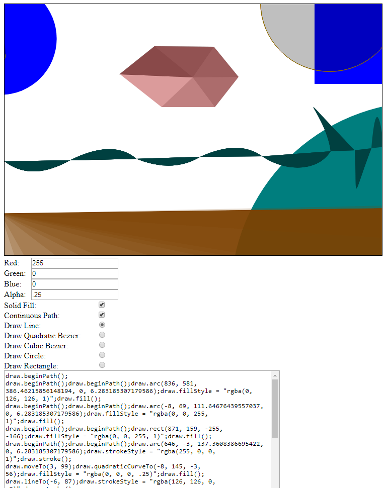View PosterA primitive paint program I made to assist with an early Graphics Programming project that was used to demonstrate just how intensive making simple graphics can be. You can play around with it here, or download the source code here (3 KB).